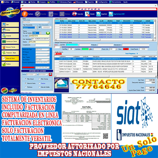 Sistemas de facturación en línea aprobados por el SIAT.